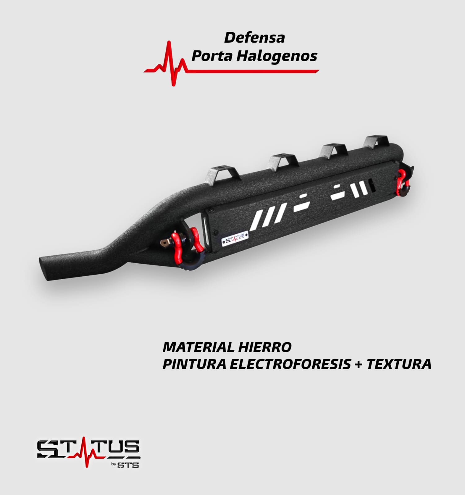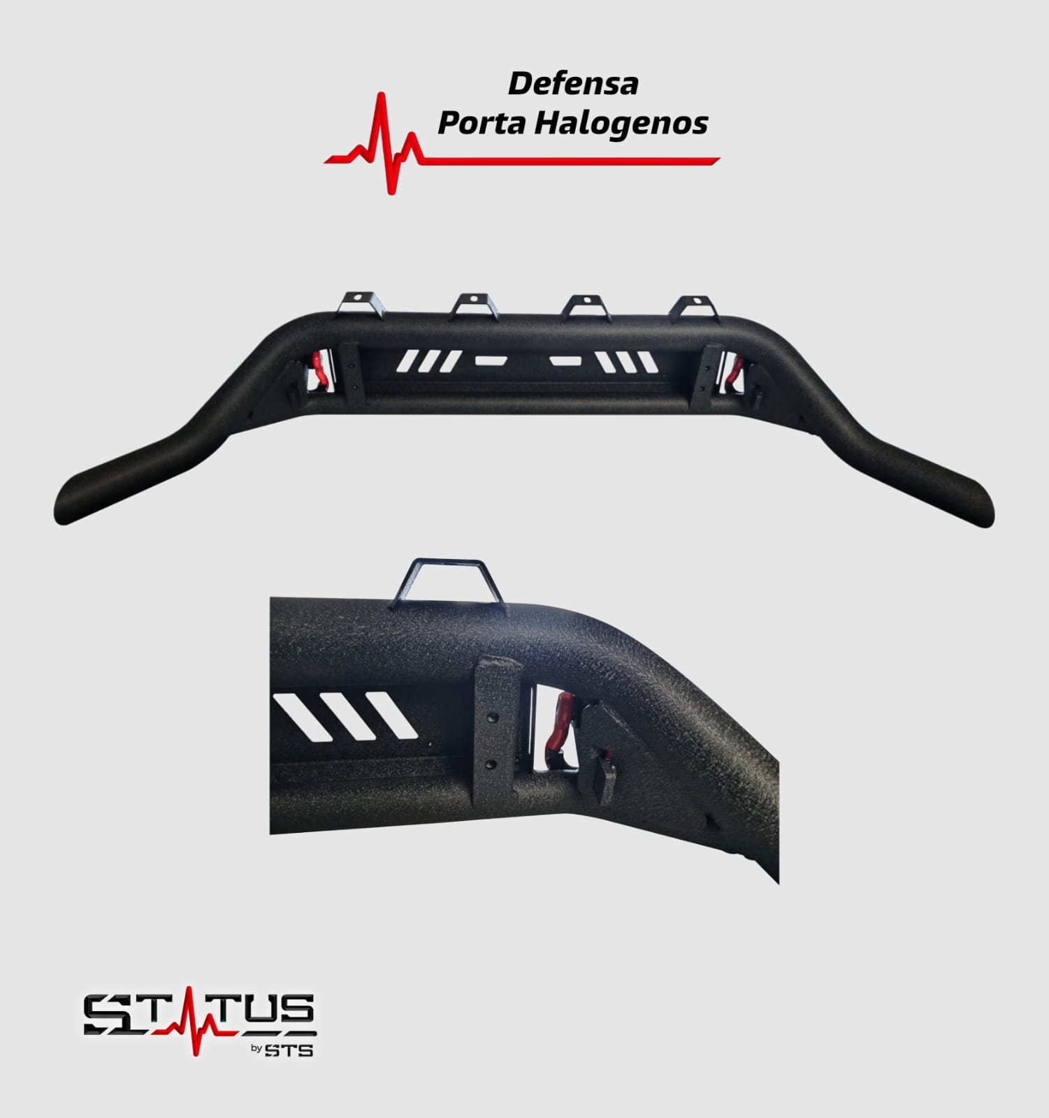 La Defensa Porta Halógenos STATUS está diseñada para ofrecer protección frontal, funcionalidad y un estilo agresivo en pickups 4×4. Es el complemento ideal para quienes buscan mejorar tanto la estética como la capacidad de su vehículo en entornos off-road o uso diario exigente.
